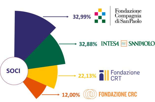 Equiter presenta una composizione azionaria solida e innovativa, che vede tre delle più importanti Fondazioni Bancarie a livello nazionale, Compagnia di San Paolo, Fondazione CRT e Fondazione CRC, insieme a Intesa Sanpaolo, gruppo bancario leader in Italia.